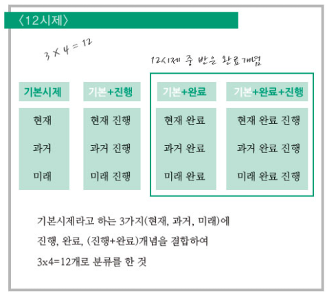 12시제는, 일반(simple) 현재(present), 과거(past), 미래(future)에