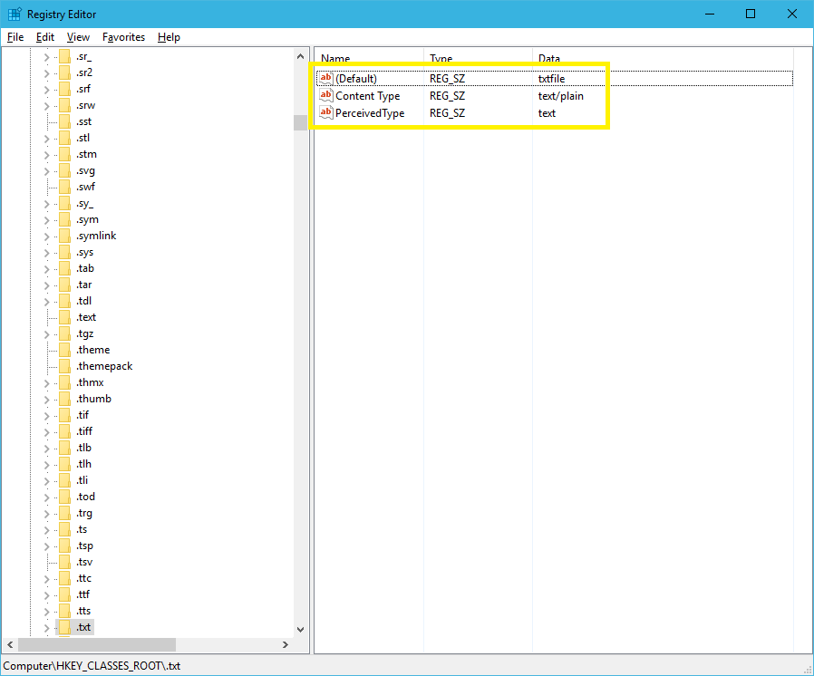 (Default) = txtfile