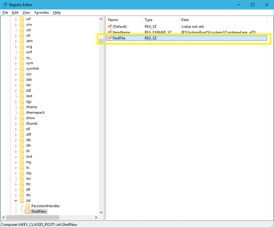 ④[HKEY_CLASSES_ROOT/.txt/ShellNew]