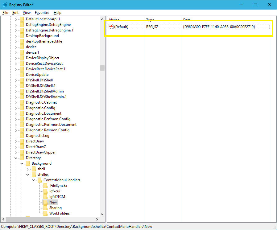 (Default) = {5e941d80-bf96-11cd-b579-08002b30bfeb}