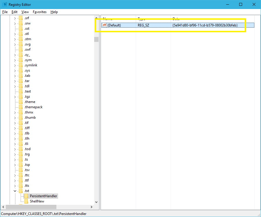 ③[HKEY_CLASSES_ROOT/.txt/PersistentHandler]