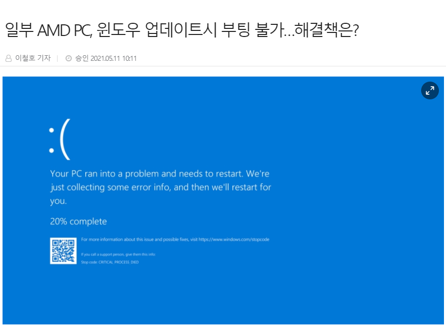 ▶ 일부 AMD 라이젠 시스템에서 최신 윈도우 업데이트 이후 시스템을 부팅할 수 없는 문제가 발생하고 있어 사용자들의 주의가 요구된다.